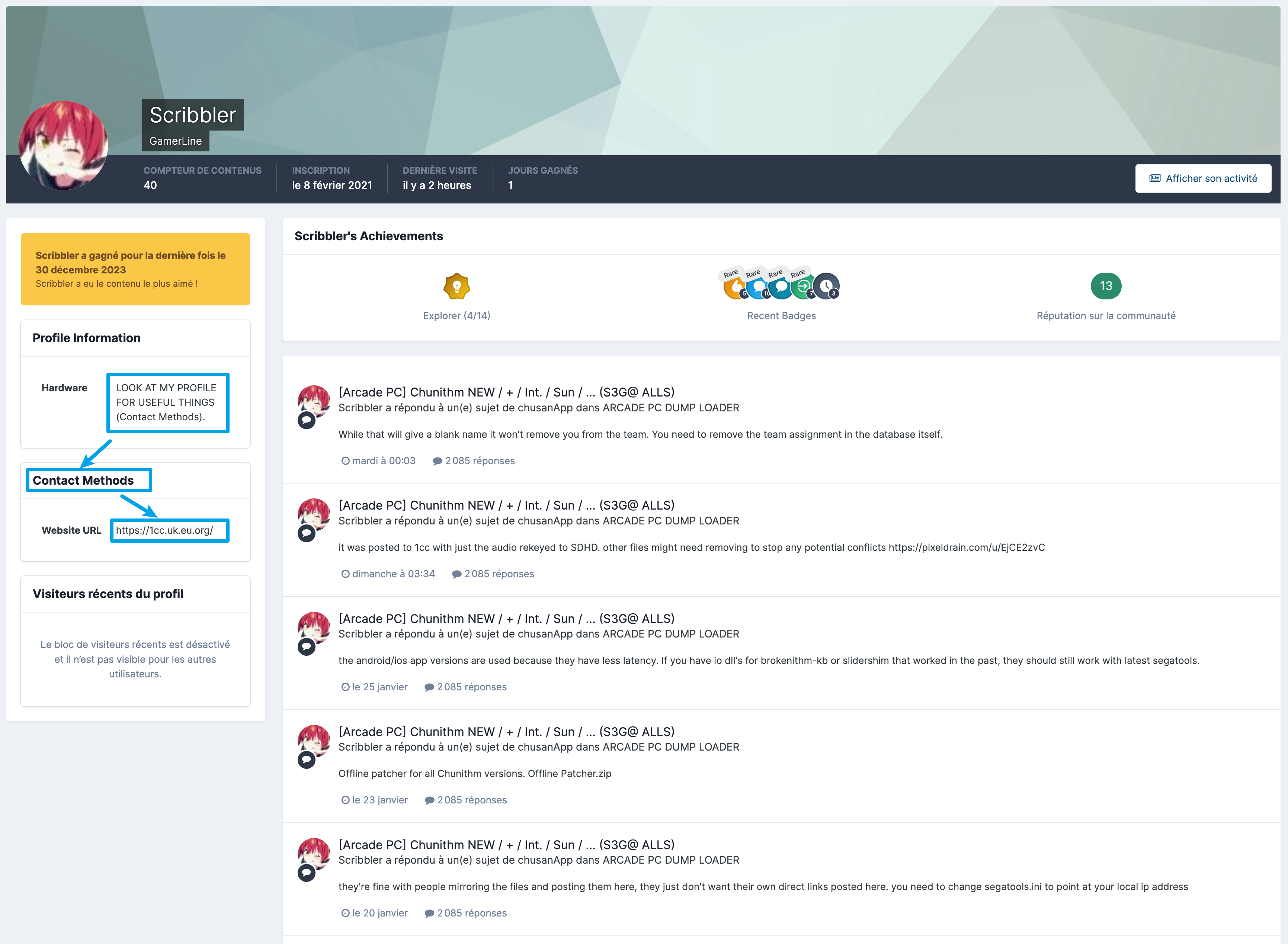 不过有趣且幸运的事情发生了,就在浏览 TA 个人主页的时候,就扫到了这样的 Profile Information,里面就直接指向了 1cc 社区的链接了!