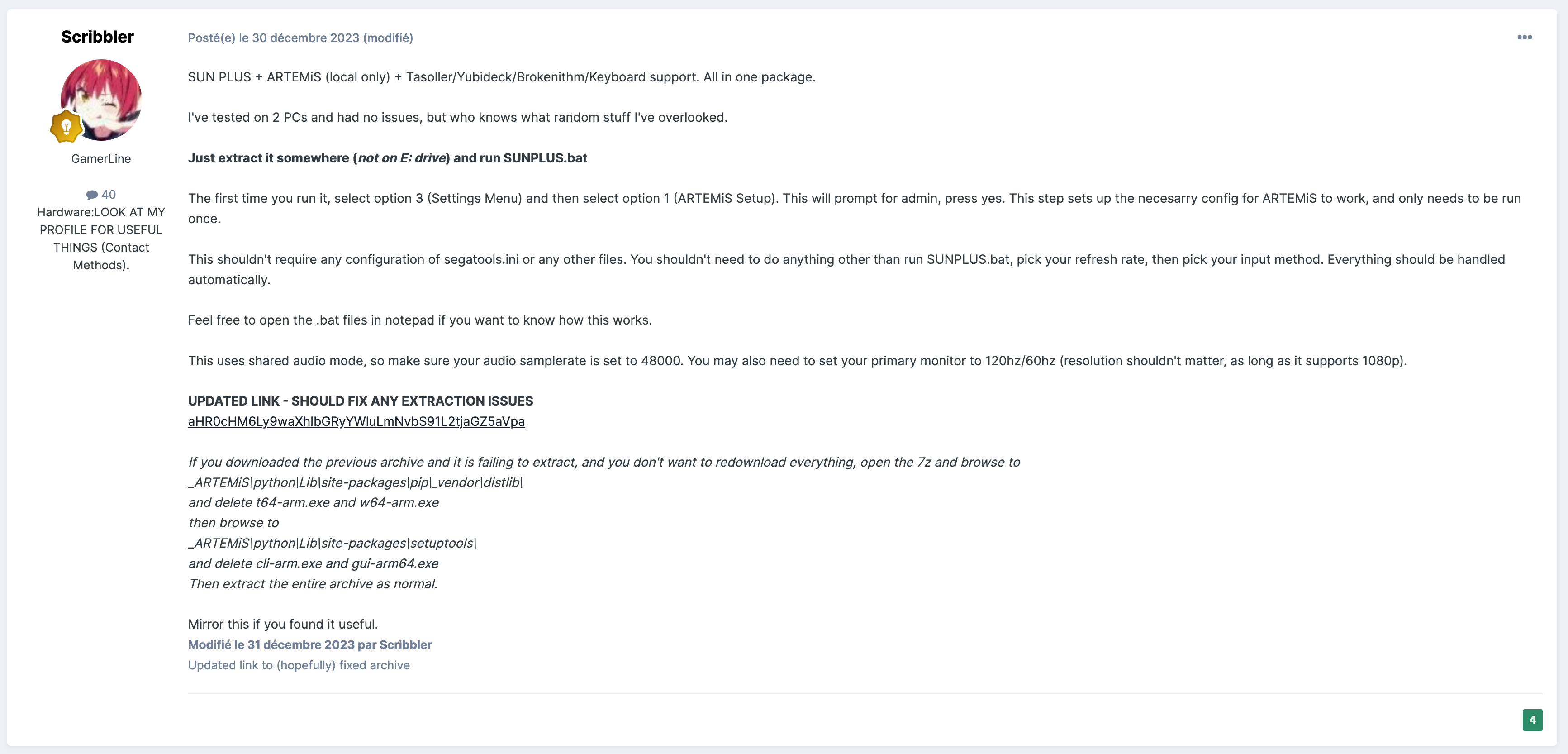 阅读着阅读着就看到了这么一篇帖子回复,里面提及了 UPDATED LINK(更新后的链接),我理解是补档吧,乍一看还是一个 base64 编码过的字符串: