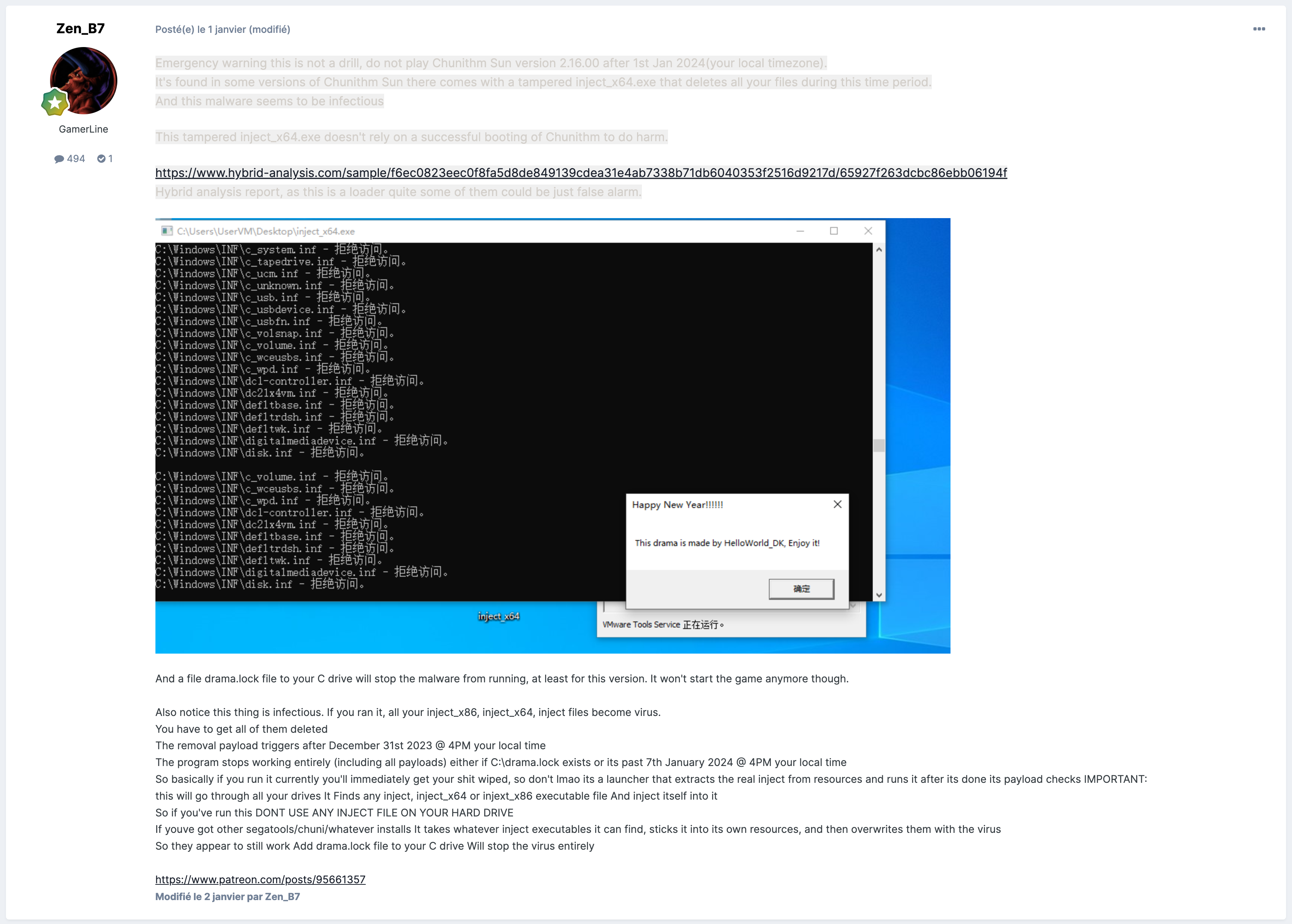 他分享说有坏人在帖子回复中的链接所对应的数据包中混了恶意代码,运行的时候会把系统弄坏!😠