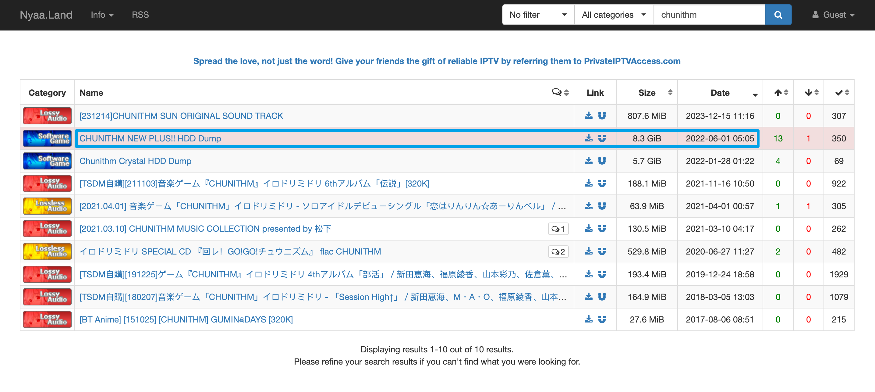 转念一想,我想起来我曾经在 Nyaa 站看到过 CHUNITHM 和 maimai 的资源,抱着试一试的心态去看了看: