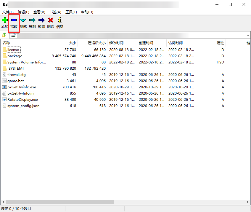 在资源管理器中右键使用 7z 打开,点按上方的提取(Extract)按钮,然后选择期望解压的文件夹进行解压。