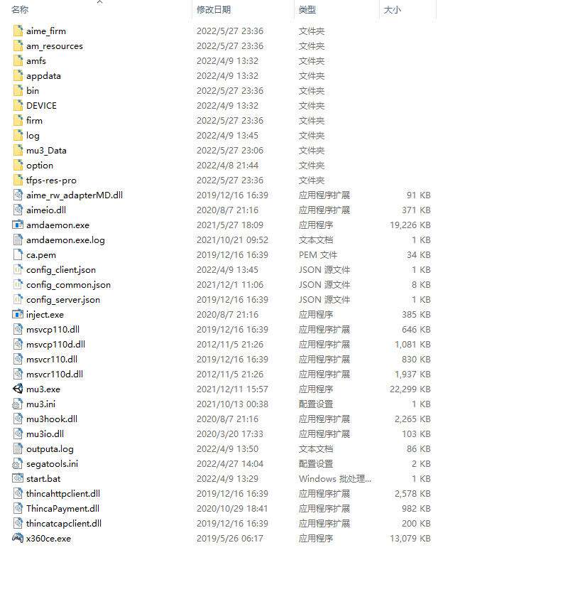 当然,如果 segatools.ini 并不和这三个文件夹在同一层级的话,你可能需要根据自己的情况填写绝对路径或是相对路径。