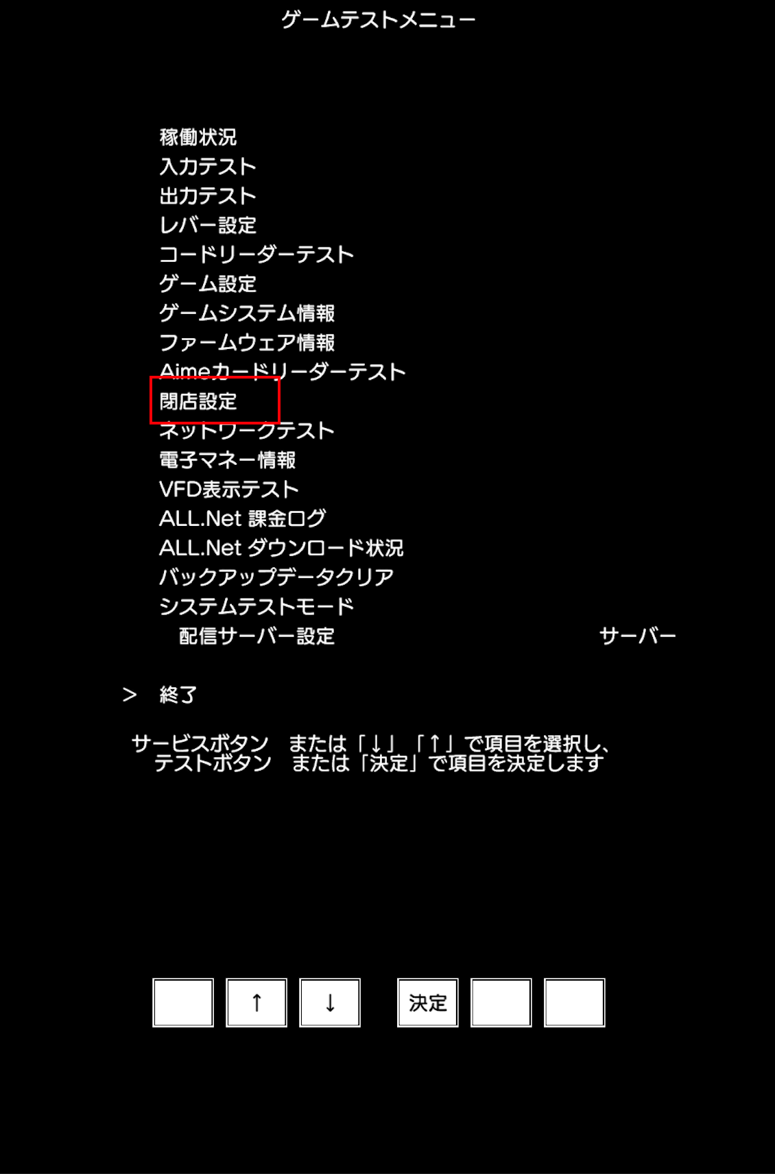 1. 前往 service 模式,导航到「閉店設定 (店铺关门设定)」并按下 RIGHT_A 按键(默认是 J)来进行店铺关门设定