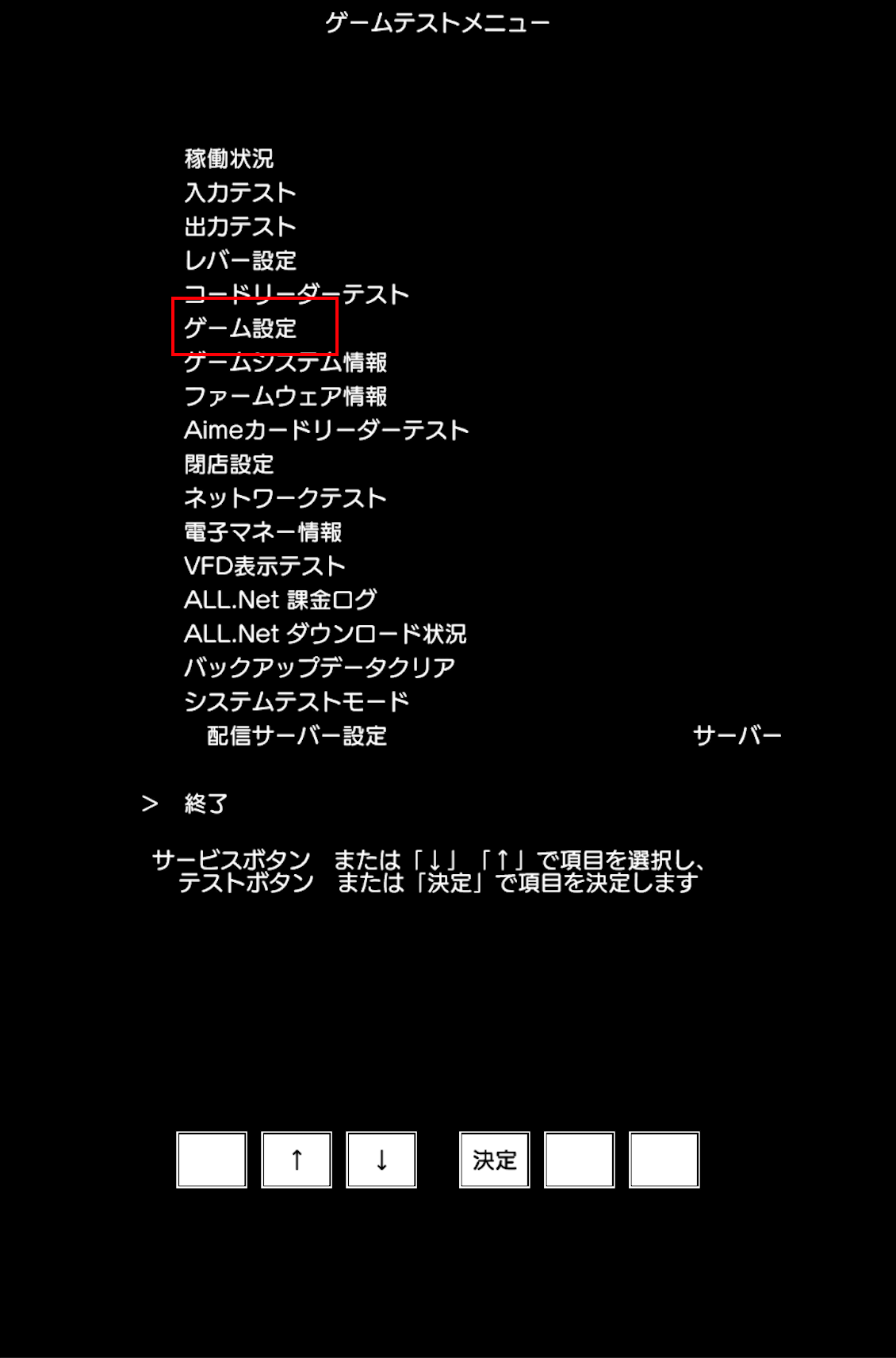 1. 前往 service 模式,导航到「ゲーム設定(游戏设定)」并按下 RIGHT_A 按键(默认是 J)来进行游戏设定