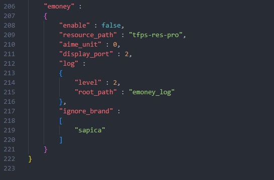 如果你没有物理连接的 Aime 读卡器,则需要额外设定一个新的字段 enable 并设定它的值为 1 ,比如: