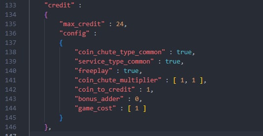 编辑 credit 对象下方的 config 对象中的 freeplay 字段值为 true 这样在连接到服务器时,直接选择自己期望的币值即可,有些情况下可能会需要倒计时为 0 时币值才会生效