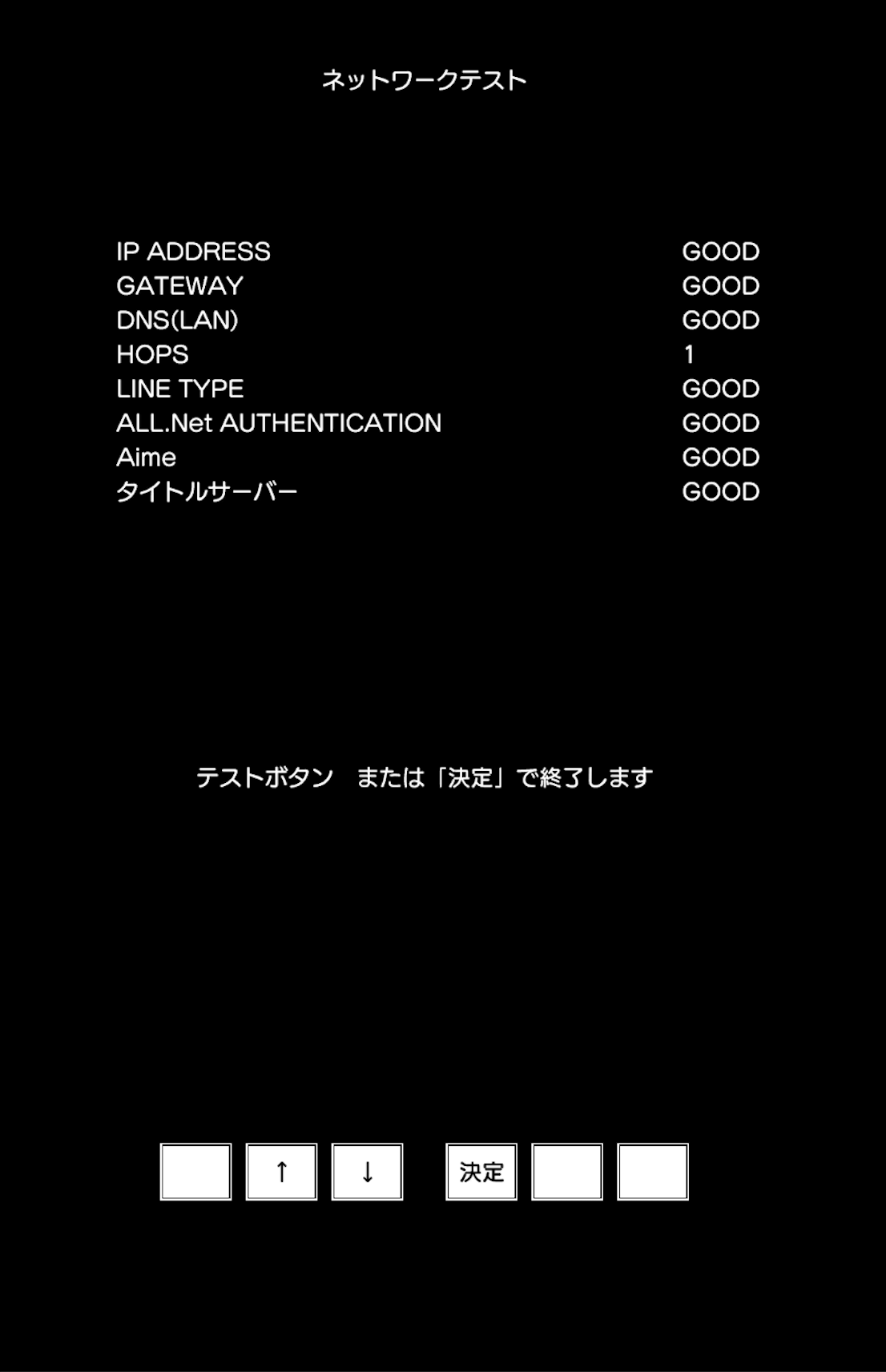想要检查网络连接,可以前往 service 模式,导航到「ネットワークテスト(网络测试)」并执行测试: