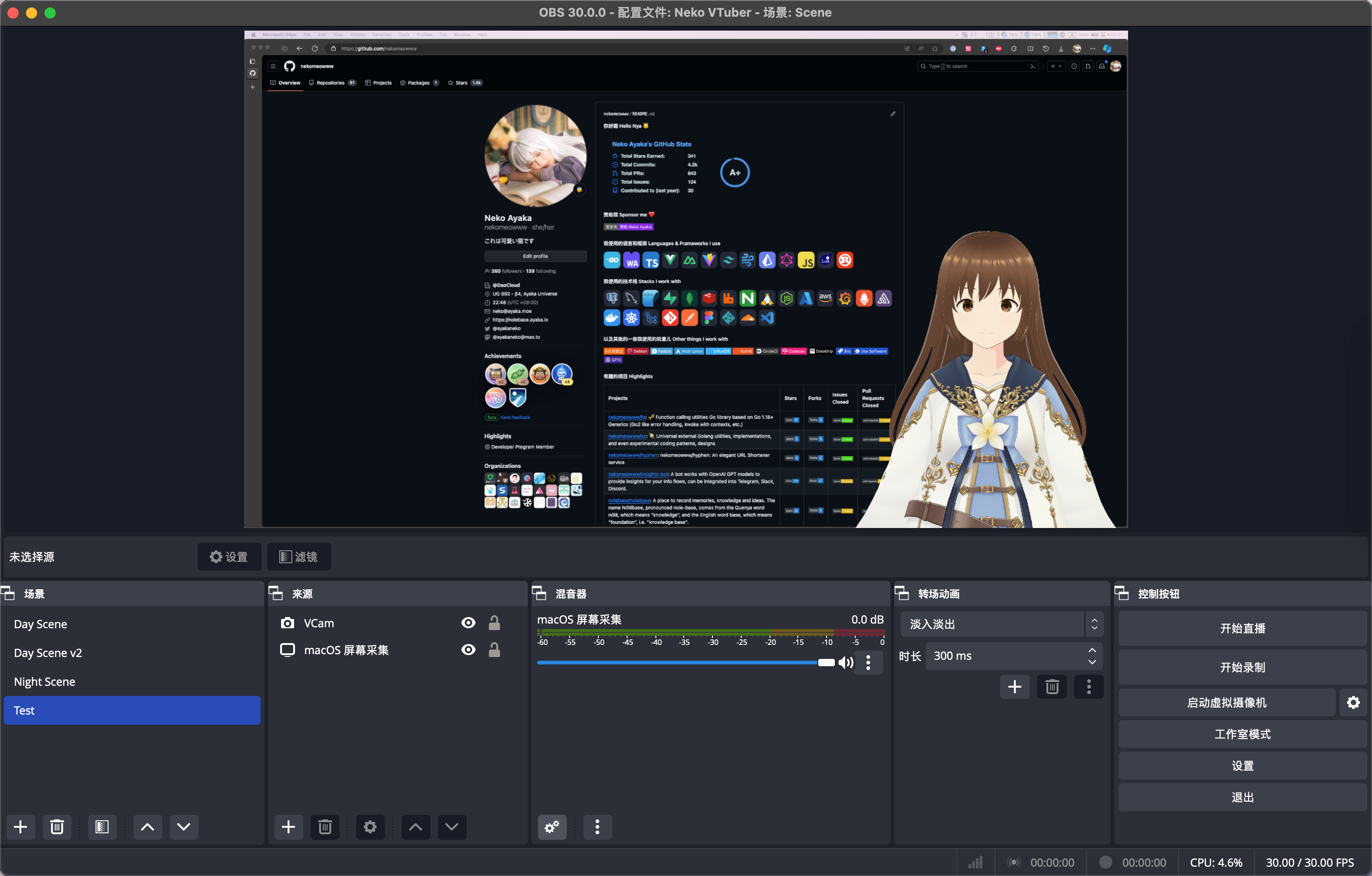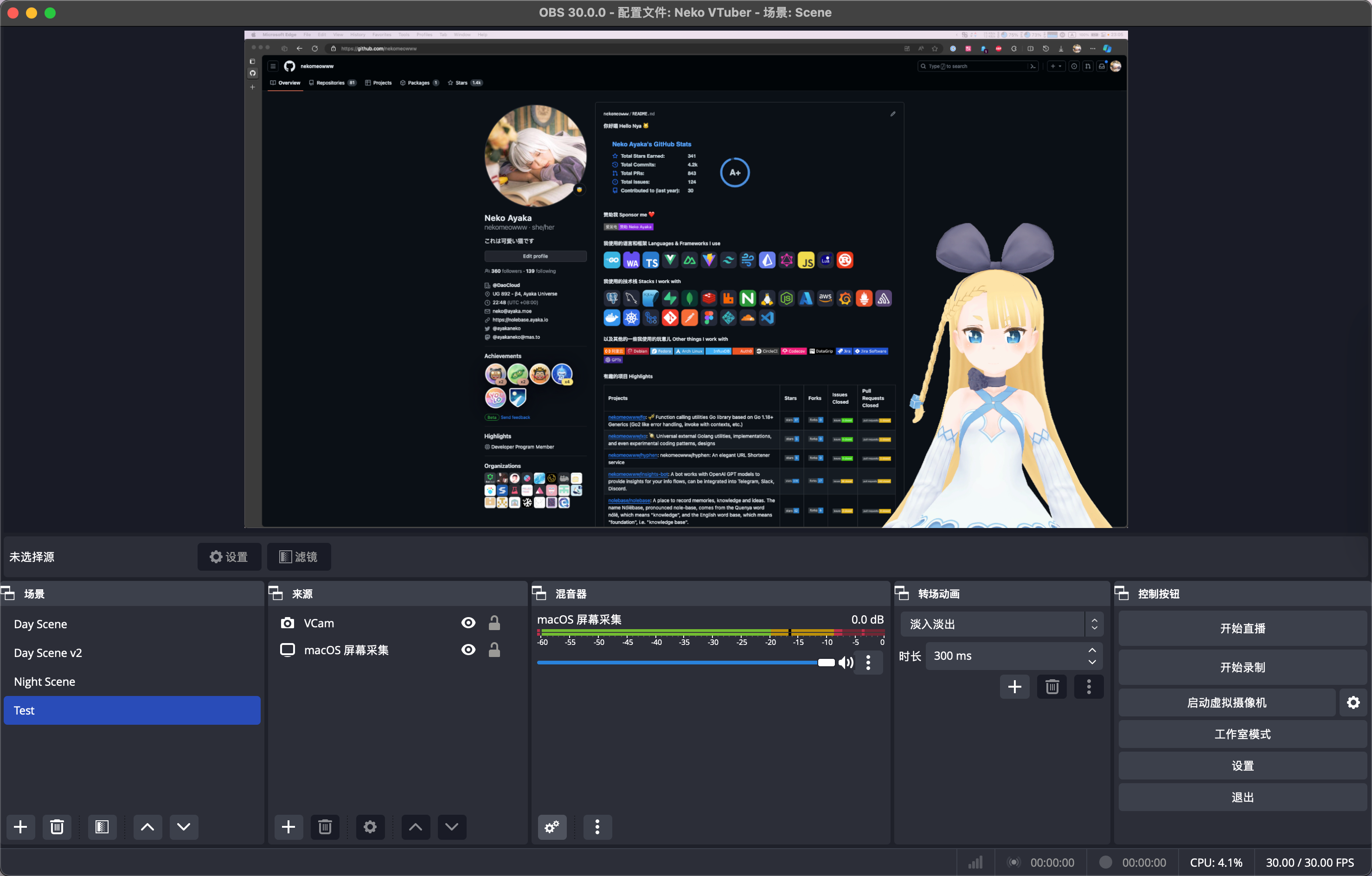 确认无误后点击「确认」,这个时候再返回 OBS 就能看到和在 VCam 里面看到的一样的画面了: