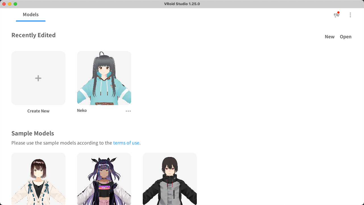 安装完成之后打开 VRoid Studio 就可以看到界面了,它长这样: