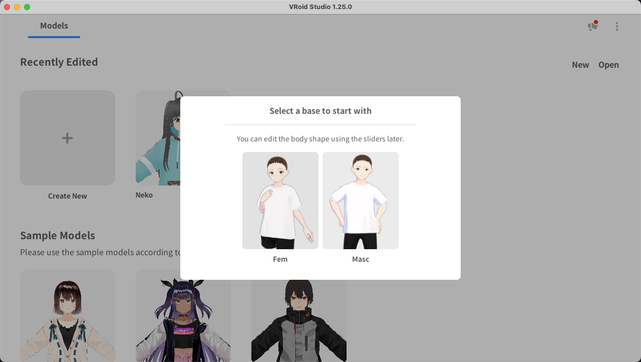 我比较可爱,这里就用「Fem」作为基础模型来创建: