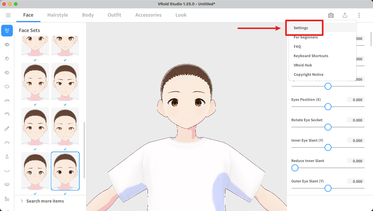 VRoid Studio 的界面其实和游戏里的捏人十分相像,顶部 Tab 栏从左到右依次是