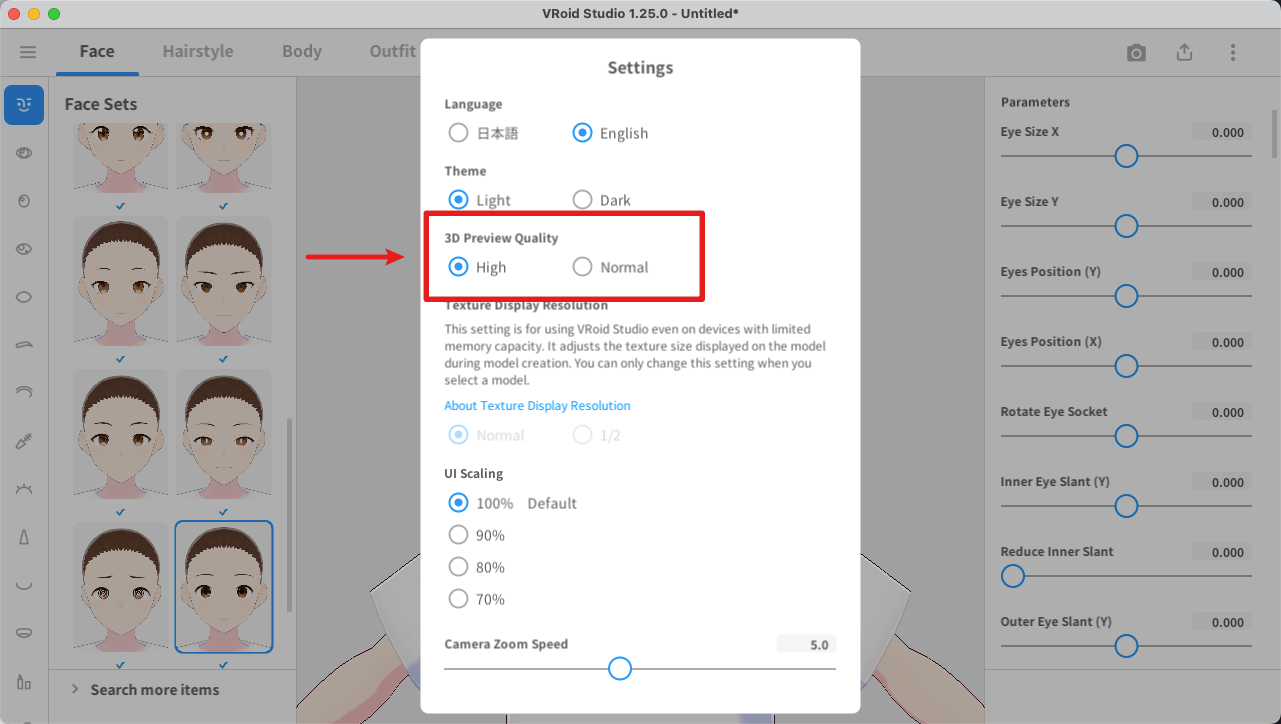 然后配置「3D Preview Quality(3D 预览质量)」为「High(高)」即可解决分辨率低或者说渲染质量很差的问题: