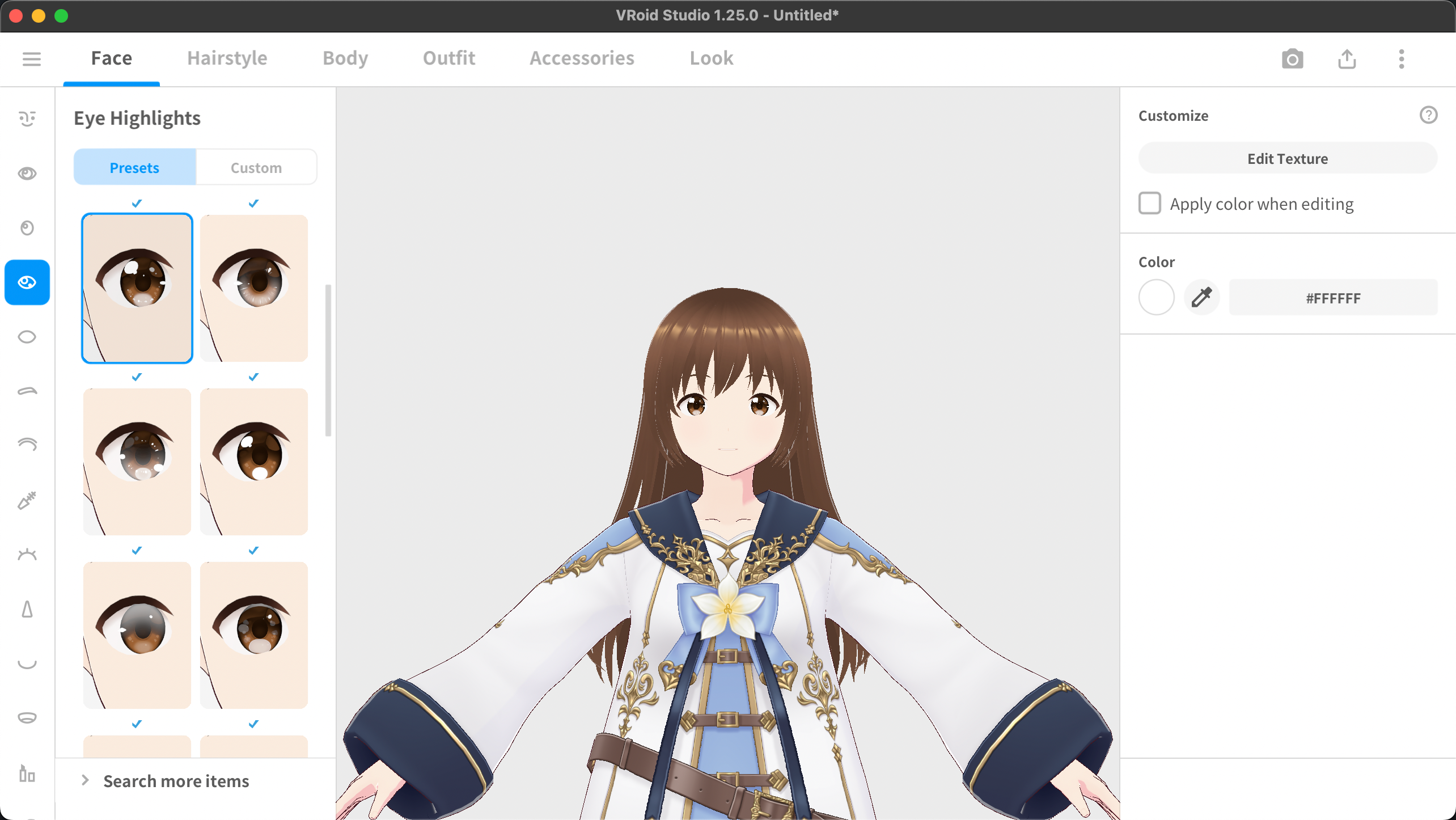如果你有尝试探索 VRoid Studio 编辑器,你应该可以发现,很多地方是可以添加自己的 Preset 预设的。这里就要介绍到,其实在 VRChat 和 Vtuber 模型的生态里,人设、本体模型和外观,以及配件是可以分开创作、购买、下载和加载的。这也是为什么绝大多数的 Vtuber 能在特殊节日或者活动的时候换上特别的衣服或者打扮的根本原因。