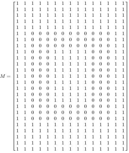 我们来看一个奇异值分解在数据表达上的应用。假设我们有如下的一张 15 x 25 的图像数据。